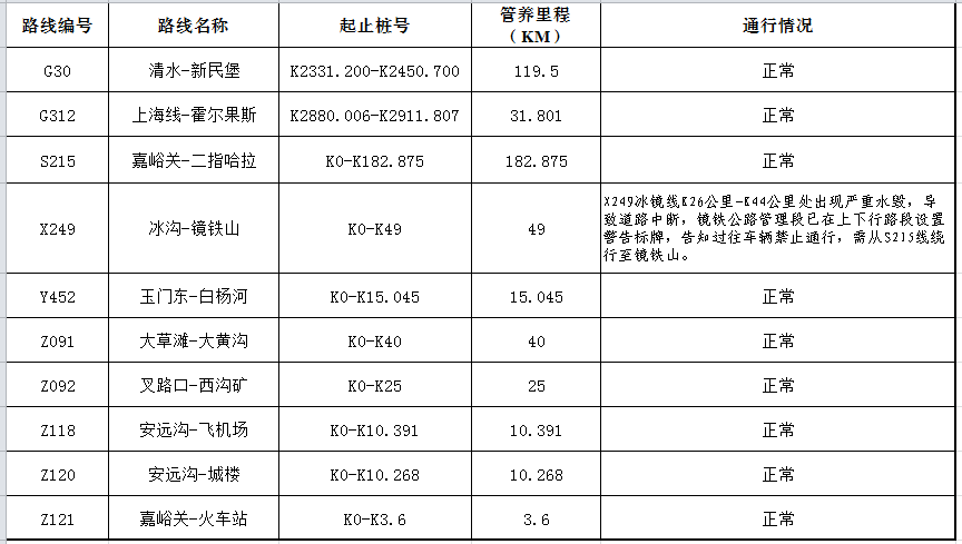 • 嘉峪关公路管理局管养公路路况信息(2017年11月7日)